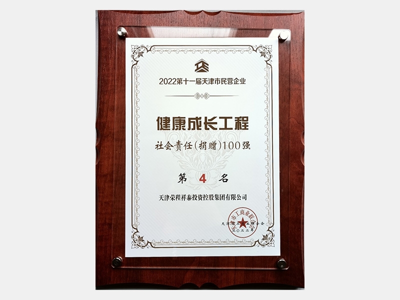 2022第十一屆天津市民營企業健康成長工程社會責任(捐贈)100強第4名