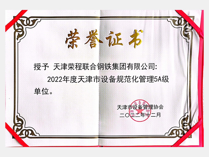 2022年度天津市設備規范化管理5A級單位