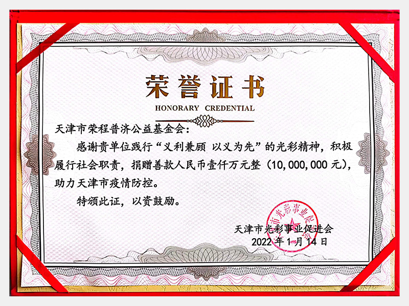 捐贈善款壹仟萬元助力天津市疫情防控