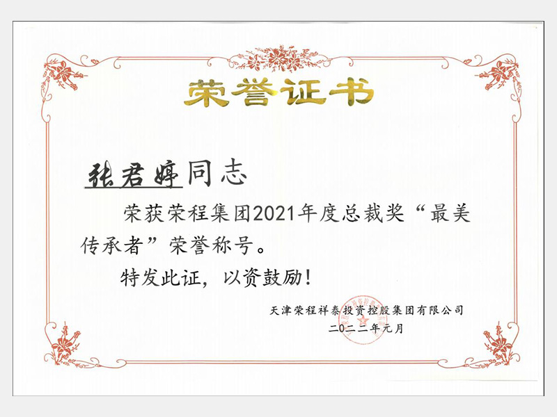 榮獲榮程集團2021年度總裁獎“最美傳承者”榮譽稱號