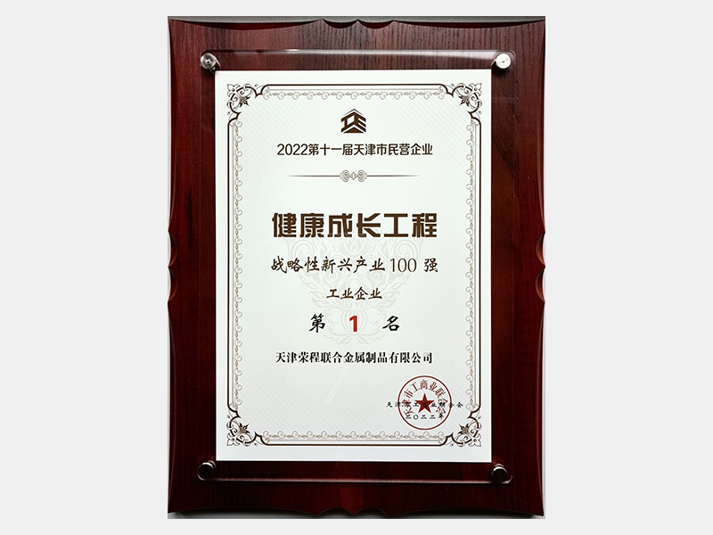 2022第十一屆天津市民營企業健康成長工程戰略性新興產業100強工業企業第1名