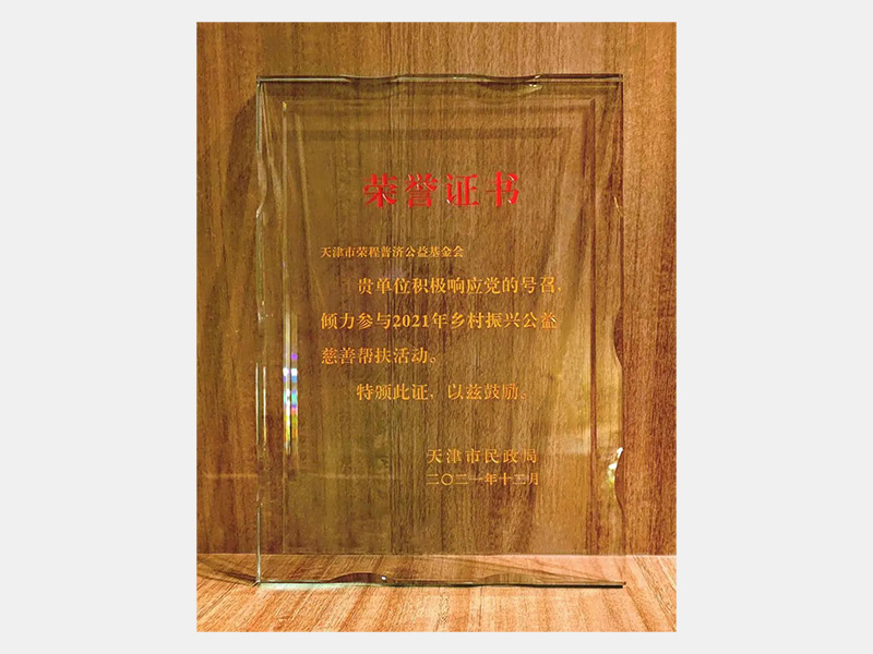 “傾力參與2021鄉村振興公益慈善幫扶活動”榮譽證書