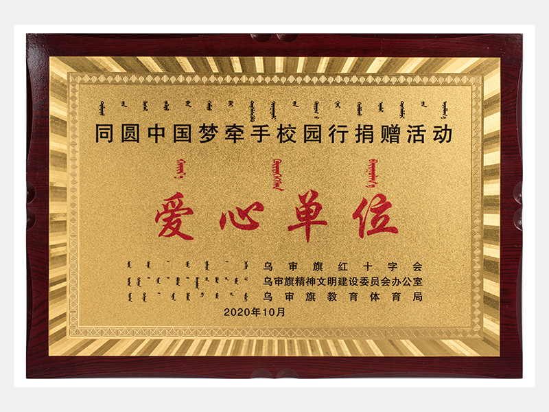 同圓中國夢牽手校園行捐贈活動-愛心單位獎牌