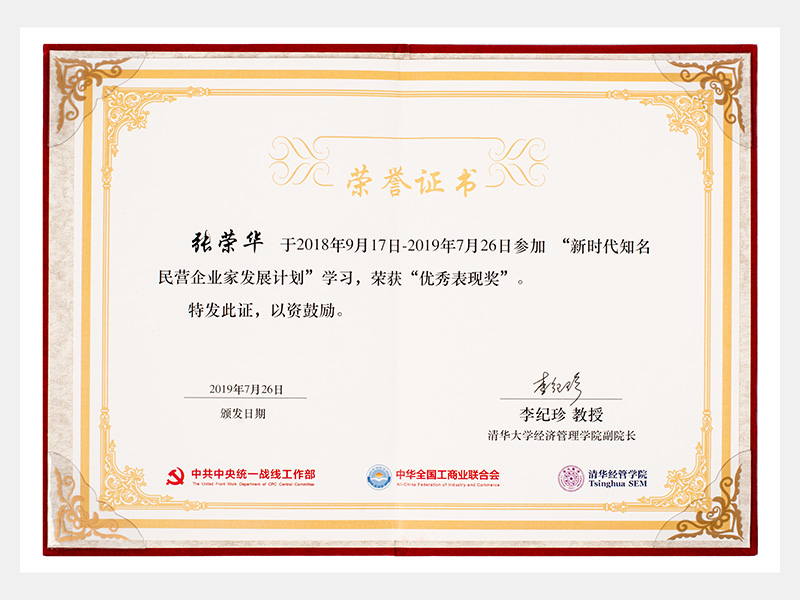 “新時代知名民營企業家發展計劃”學習中,榮獲“優秀表現獎”